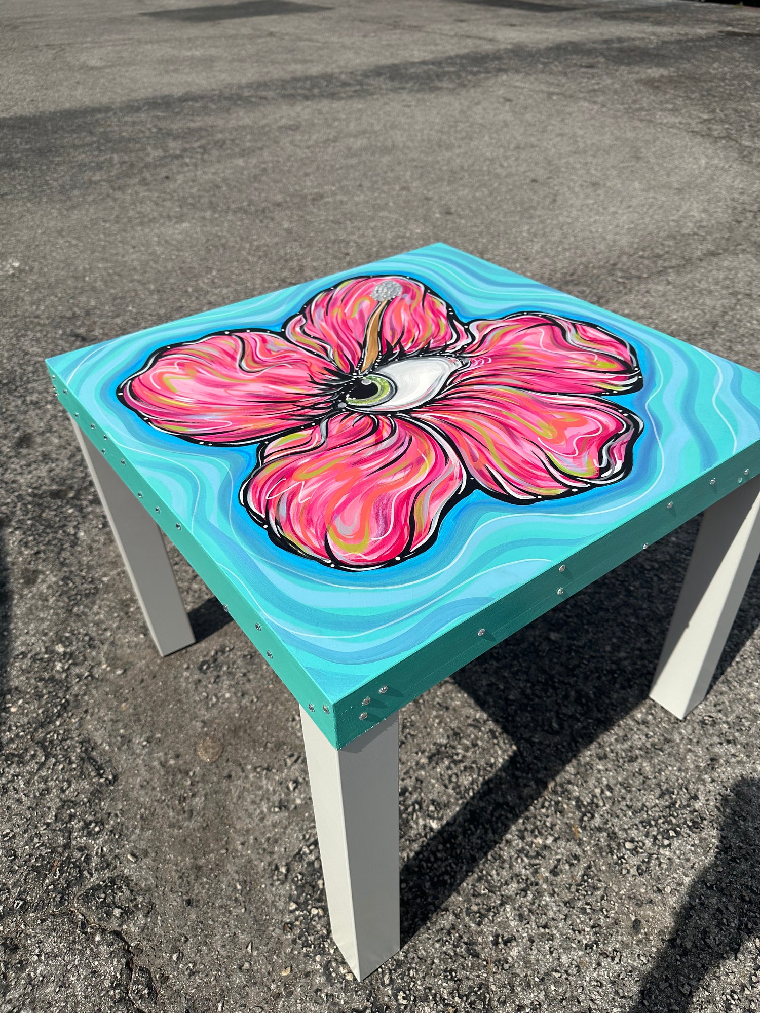 A custom hand-painted table created as a donation for The Center Orlando's auction! Adorned with rhinestones and pearls.