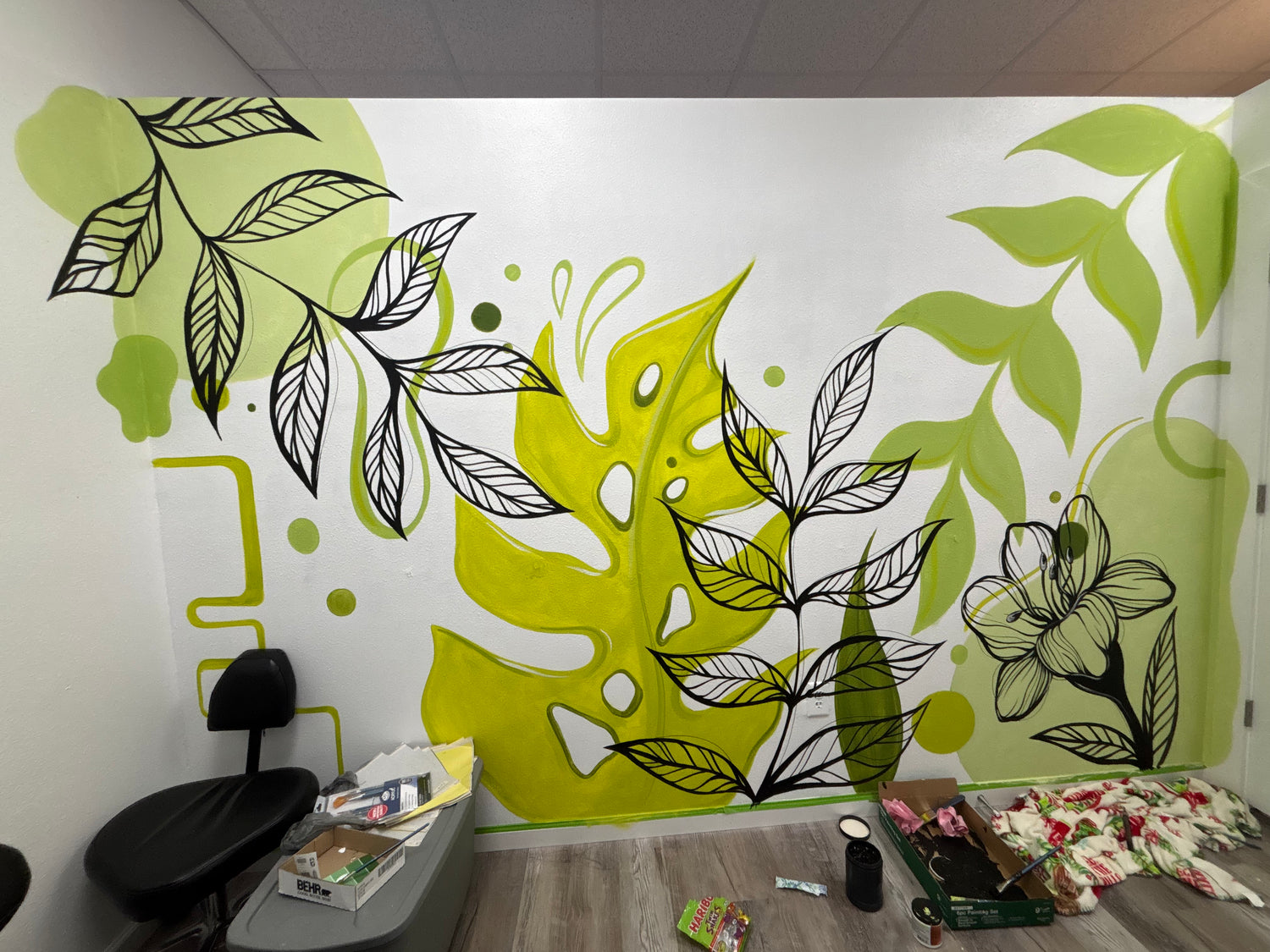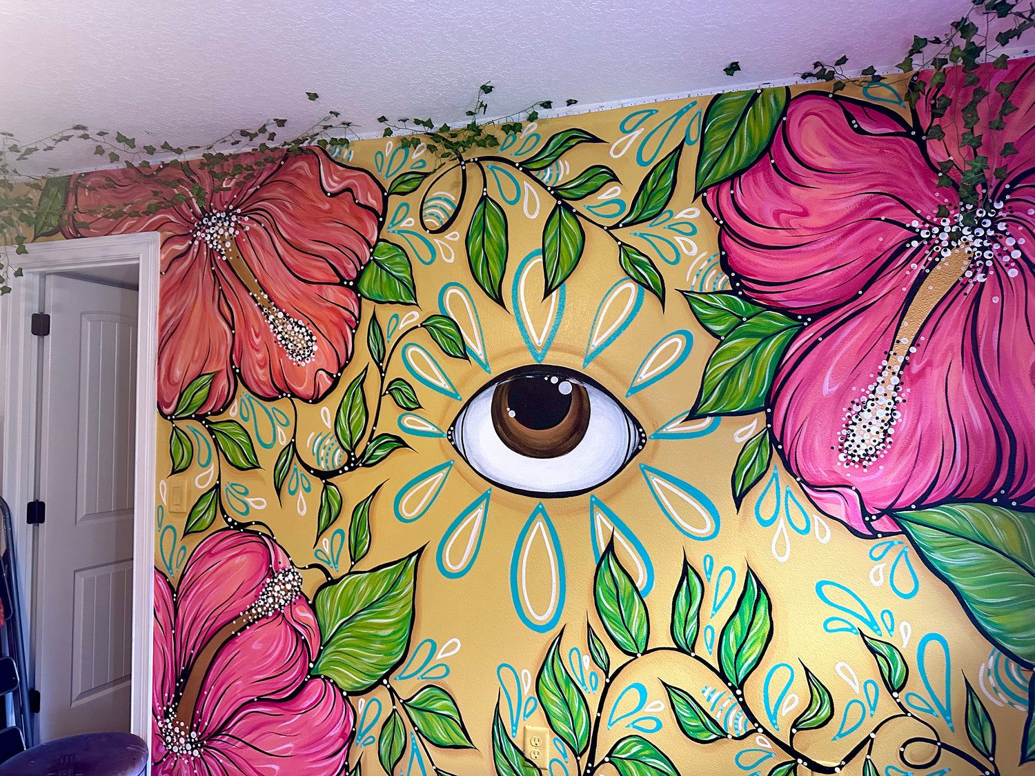 A custom floral wall mural with my signature eye in the center!